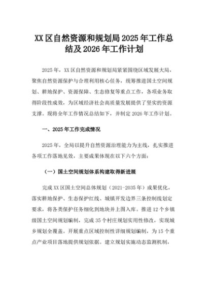 【七哥公文】2025年:XX区自然资源和规划局2025年工作总结及2026年工作计划_副本+更多免费公文+VX:QiGeGongWen2024