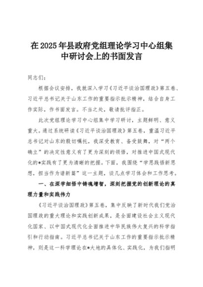【七哥公文】2025年:在2025年县政府党组理论学习中心组集中研讨会上的书面发言+更多免费公文+VX:QiGeGongWen2024