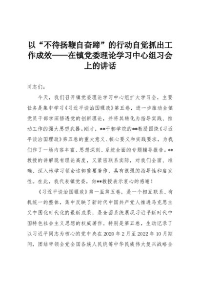 【七哥公文】2025年:以“不待扬鞭自奋蹄”的行动自觉抓出工作成效——在镇党委理论学习中心组习会上的讲话+更多免费公文+VX:QiGeGongWen2024