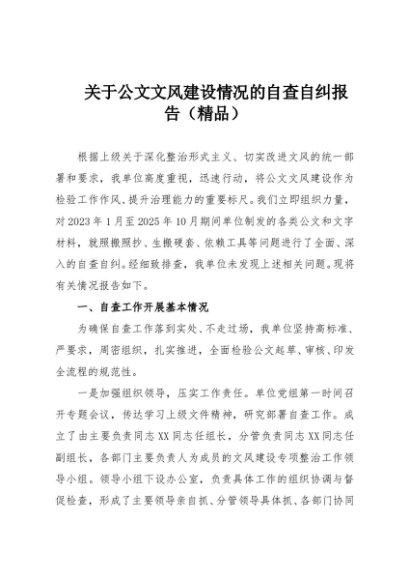/ 【七哥公文】2025年:关于公文文风建设情况的自查自纠报告(精品)+更多免费公文+VX:QiGeGongWen2024