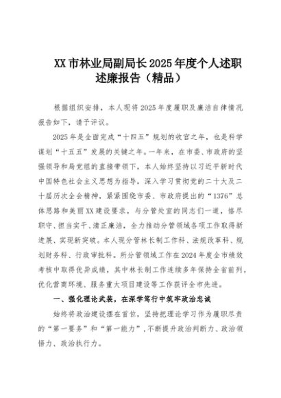【七哥公文】2025年:XX市林业局副局长2025年度个人述职述廉报告(精品)+更多免费公文+VX:QiGeGongWen2024