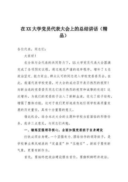 / 【七哥公文】2025年:在XX大学党员代表大会上的总结讲话(精品)+更多免费公文+VX:QiGeGongWen2024