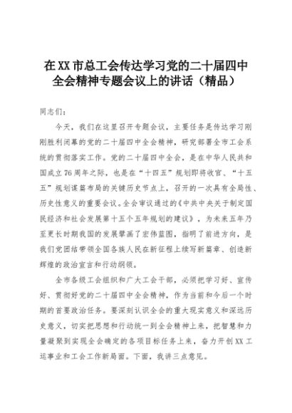 【七哥公文】2025年:在XX市总工会传达学习党的二十届四中全会精神专题会议上的讲话(精品)+更多免费公文+VX:QiGeGongWen2024