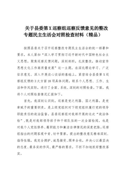【七哥公文】2025年:关于县委第X巡察组巡察反馈意见的整改专题民主生活会对照检查材料(精品)+更多免费公文+VX:QiGeGongWen2024