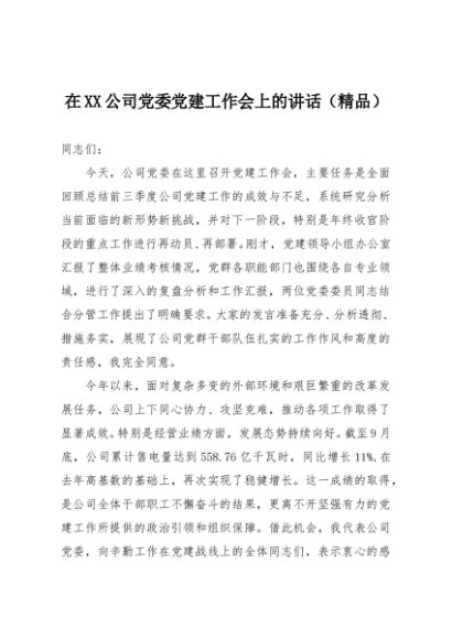 / 【七哥公文】2025年:在XX公司党委党建工作会上的讲话(精品)+更多免费公文+VX:QiGeGongWen2024