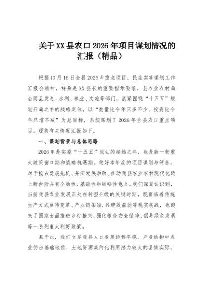/ 【七哥公文】2025年:关于XX县农口2026年项目谋划情况的汇报(精品)+更多免费公文+VX:QiGeGongWen2024