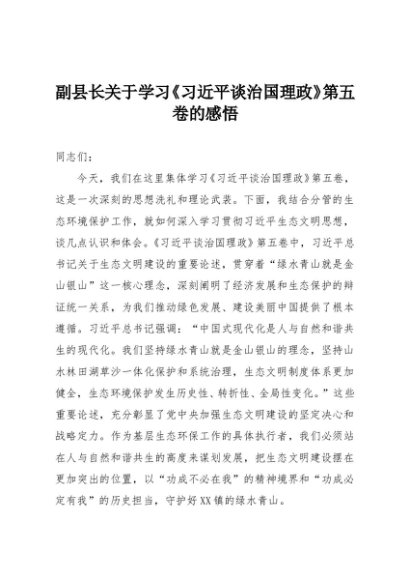 【七哥公文】2025年:副县长关于学习《习近平谈治国理政》第五卷的感悟+更多免费公文+VX:QiGeGongWen2024