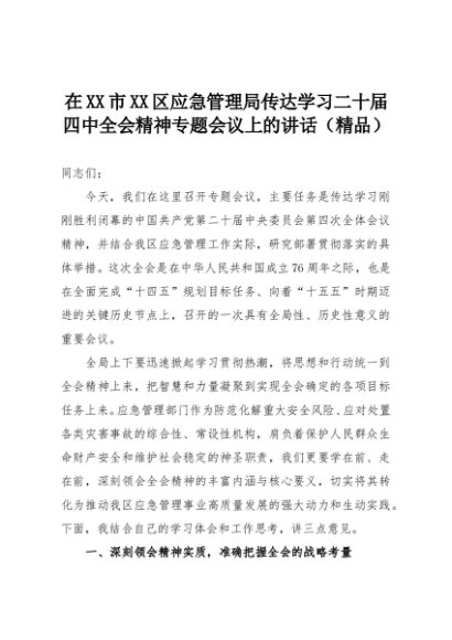 【七哥公文】2025年:在XX市XX区应急管理局传达学习二十届四中全会精神专题会议上的讲话(精品)+更多免费公文+VX:QiGeGongWen2024