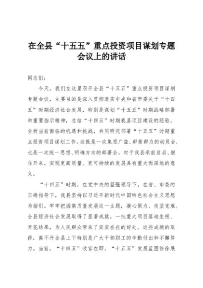 / 【七哥公文】2025年:在全县“十五五”重点投资项目谋划专题会议上的讲话+更多免费公文+VX:QiGeGongWen2024
