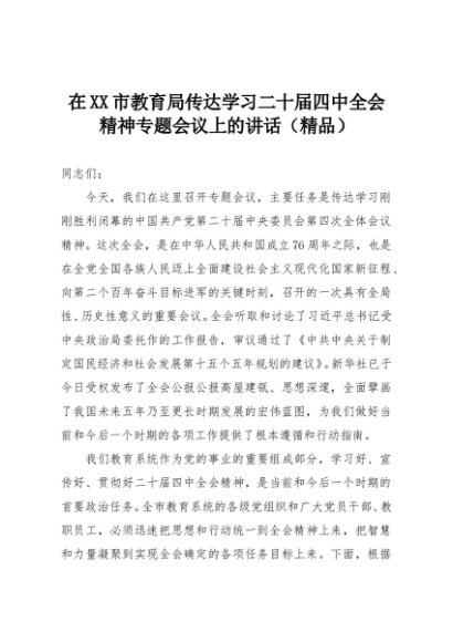 【七哥公文】2025年:在XX市教育局传达学习二十届四中全会精神专题会议上的讲话(精品)+更多免费公文+VX:QiGeGongWen2024