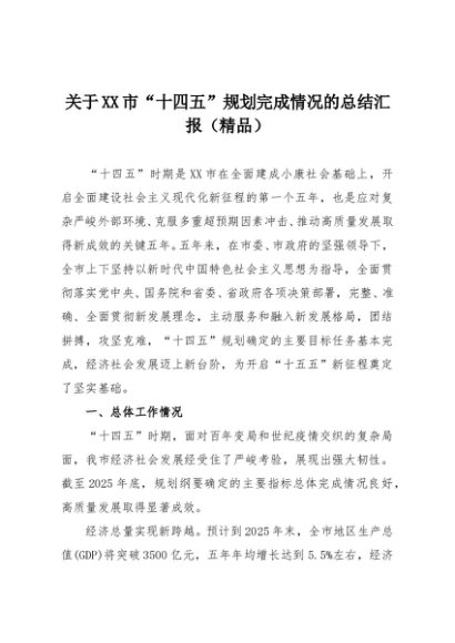 【七哥公文】2025年:关于XX市“十四五”规划完成情况的总结汇报(精品)+更多免费公文+VX:QiGeGongWen2024