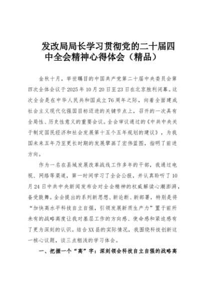 【七哥公文】2025年:发改局局长学习贯彻党的二十届四中全会精神心得体会(精品)+更多免费公文+VX:QiGeGongWen2024