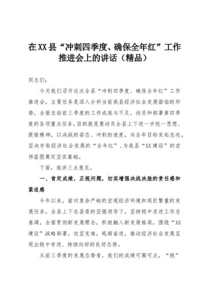 【七哥公文】2025年:在XX县“冲刺四季度、确保全年红”工作推进会上的讲话(精品)+更多免费公文+VX:QiGeGongWen2024