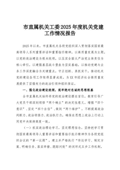 / 【七哥公文】2025年:市直属机关工委2025年度机关党建工作情况报告+更多免费公文+VX:QiGeGongWen2024