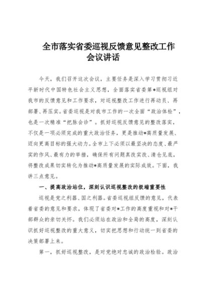 / 【七哥公文】2025年:全市落实省委巡视反馈意见整改工作会议讲话+更多免费公文+VX:QiGeGongWen2024