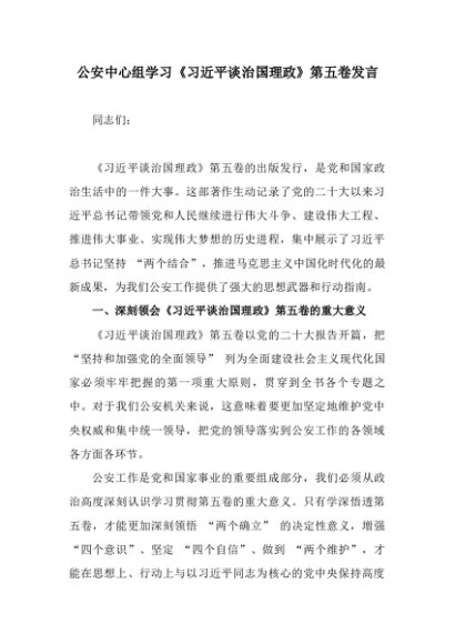 【七哥公文】2025年:公安中心组学习《习近平谈治国理政》第五卷发言+更多免费公文+VX:QiGeGongWen2024