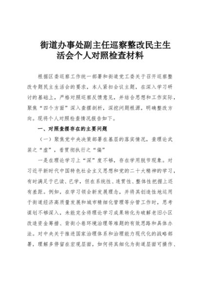 / 【七哥公文】2025年:街道办事处副主任巡察整改民主生活会个人对照检查材料+更多免费公文+VX:QiGeGongWen2024