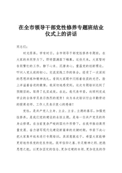 / 【七哥公文】2025年:在全市领导干部党性修养专题班结业仪式上的讲话+更多免费公文+VX:QiGeGongWen2024