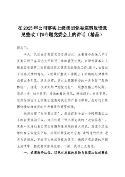 【七哥公文】2025年:在2025年公司落实上级集团党委巡察反馈意见整改工作专题党委会上的讲话(精品)+更多免费公文+VX:QiGeGongWen2024
