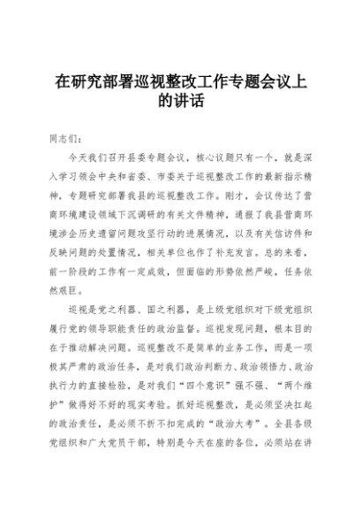 / 【七哥公文】2025年:在研究部署巡视整改工作专题会议上的讲话+更多免费公文+VX:QiGeGongWen2024