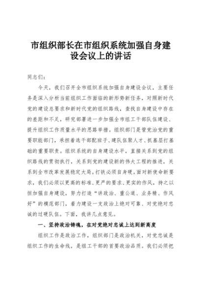 / 【七哥公文】2025年:市组织部长在市组织系统加强自身建设会议上的讲话+更多免费公文+VX:QiGeGongWen2024