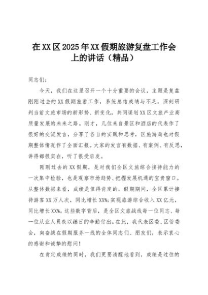 【七哥公文】2025年:在XX区2025年XX假期旅游复盘工作会上的讲话(精品)+更多免费公文+VX:QiGeGongWen2024