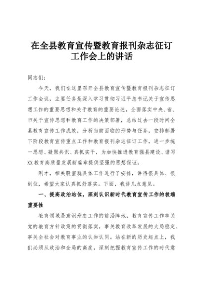 / 【七哥公文】2025年:在全县教育宣传暨教育报刊杂志征订工作会上的讲话+更多免费公文+VX:QiGeGongWen2024