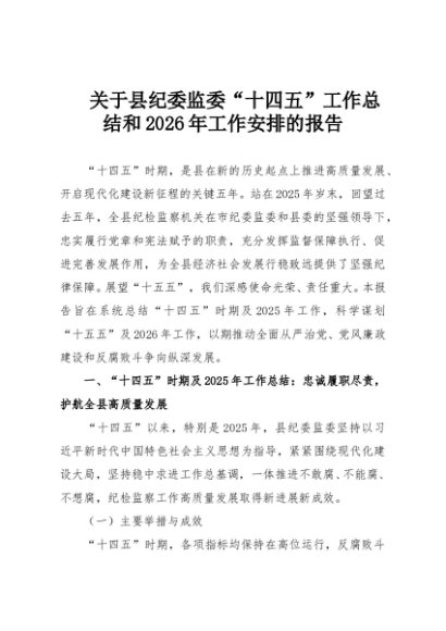 【七哥公文】2025年:关于县纪委监委“十四五”工作总结和2026年工作安排的报告+更多免费公文+VX:QiGeGongWen2024