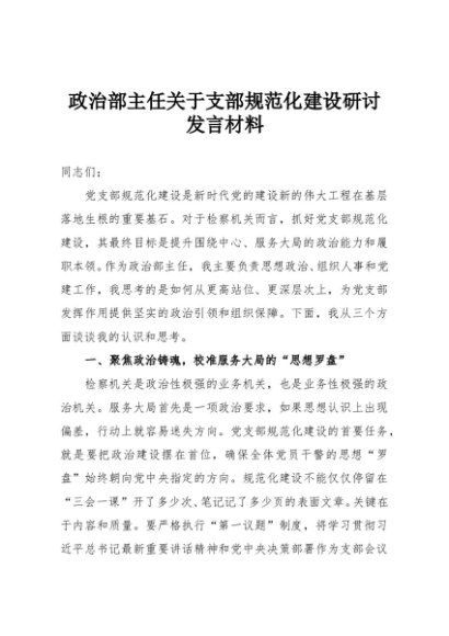 / 【七哥公文】2025年:政治部主任关于支部规范化建设研讨发言材料+更多免费公文+VX:QiGeGongWen2024