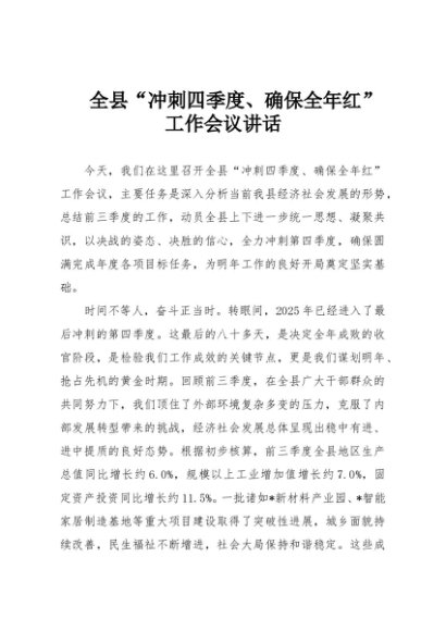 / 【七哥公文】2025年:全县“冲刺四季度、确保全年红”工作会议讲话+更多免费公文+VX:QiGeGongWen2024