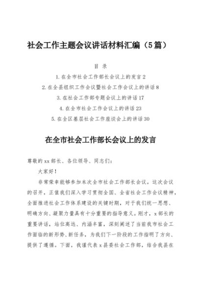 / 【七哥公文】2025年:社会工作主题会议讲话材料汇编(5篇)+更多免费公文+VX:QiGeGongWen2024