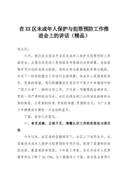 【七哥公文】2025年:在XX区未成年人保护与犯罪预防工作推进会上的讲话(精品)+更多免费公文+VX:QiGeGongWen2024