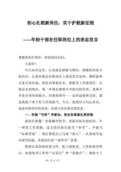 【七哥公文】2025年:年轻干部在任职岗位上的表态发言:初心扎根新岗位,实干护航新征程+更多免费公文+VX:QiGeGongWen2024