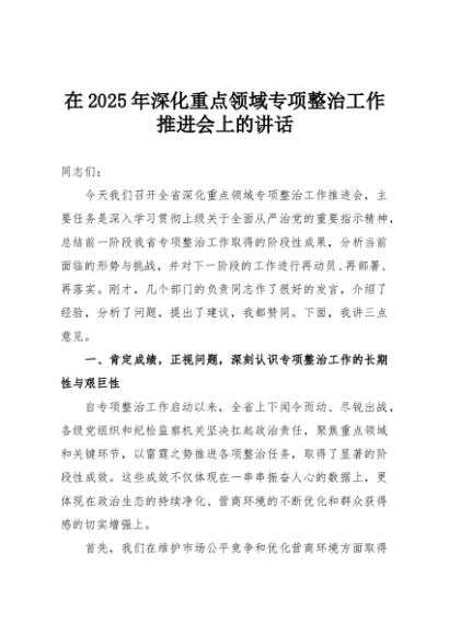 / 【七哥公文】2025年:在2025年深化重点领域专项整治工作推进会上的讲话+更多免费公文+VX:QiGeGongWen2024