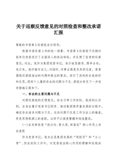 / 【七哥公文】2025年:关于巡察反馈意见的对照检查和整改承诺汇报+更多免费公文+VX:QiGeGongWen2024