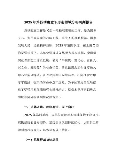 / 【七哥公文】2025年:2025年第四季度意识形态领域分析研判报告+更多免费公文+VX:QiGeGongWen2024