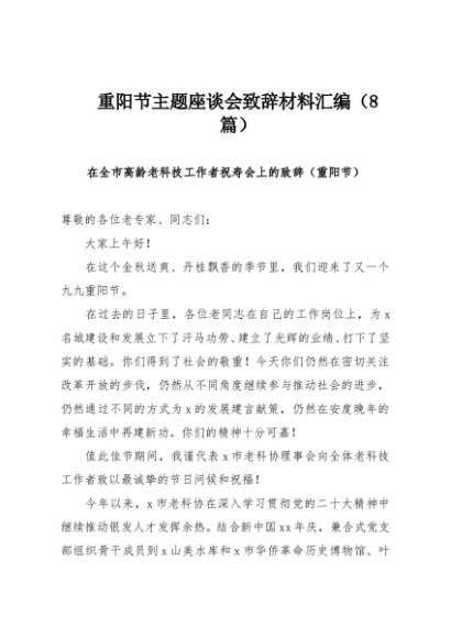 / 【七哥公文】2025年:重阳节主题座谈会致辞材料汇编(8篇)+更多免费公文+VX:QiGeGongWen2024