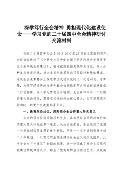 【七哥公文】2025年:深学笃行全会精神 勇担现代化建设使命——学习党的二十届四中全会精神研讨交流材料+更多免费公文+VX:QiGeGongWen2024