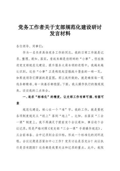 / 【七哥公文】2025年:党务工作者关于支部规范化建设研讨发言材料+更多免费公文+VX:QiGeGongWen2024