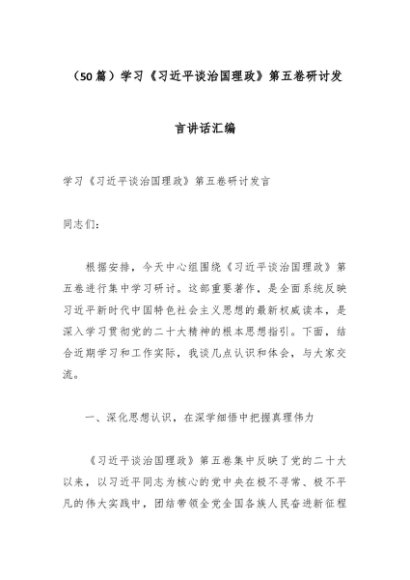 【七哥公文】2025年:(50篇)学习《总书记谈治国理政》第五卷研讨发言讲话汇编+更多免费公文+VX:QiGeGongWen2024
