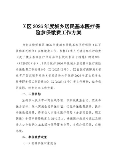 【七哥公文】2025年:X区2026年度城乡居民基本医疗保险参保缴费工作方案+更多免费公文+VX:QiGeGongWen2024