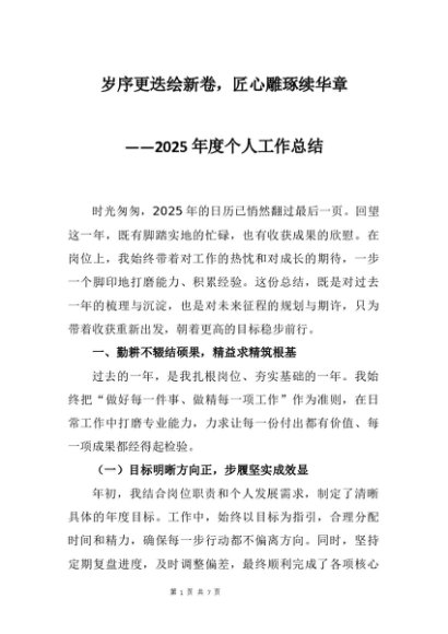 【七哥公文】2025年:2025年度个人工作总结:岁序更迭绘新卷,匠心雕琢续华章+更多免费公文+VX:QiGeGongWen2024