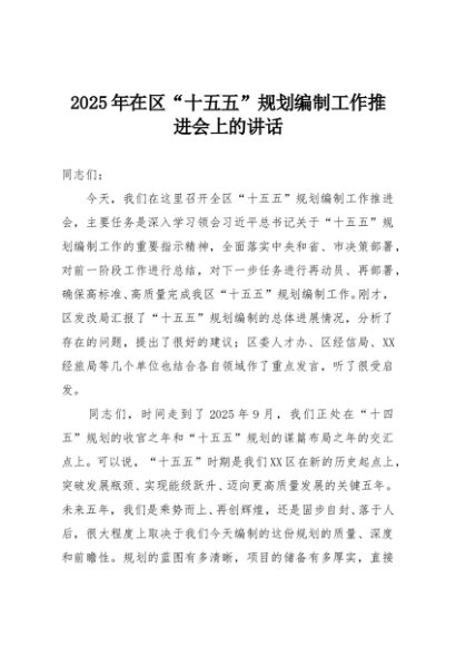 【七哥公文】2025年:2025年在区“十五五”规划编制工作推进会上的讲话+更多免费公文+VX:QiGeGongWen2024