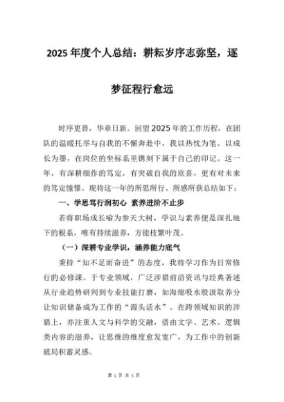 【七哥公文】2025年:2025年度个人总结:耕耘岁序志弥坚,逐梦征程行愈远+更多免费公文+VX:QiGeGongWen2024
