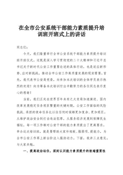 【七哥公文】2025年:在全市公安系统干部能力素质提升培训班开班式上的讲话+更多免费公文+VX:QiGeGongWen2024