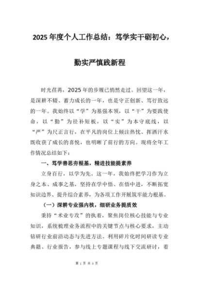 【七哥公文】2025年:2025年度个人工作总结:笃学实干砺初心,勤实严慎践新程+更多免费公文+VX:QiGeGongWen2024