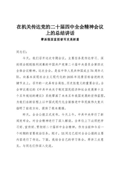 / 【七哥公文】2025年:在机关传达党的二十届四中全会精神会议上的总结讲话+更多免费公文+VX:QiGeGongWen2024