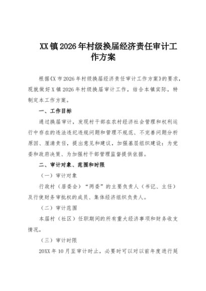 / 【七哥公文】2025年:XX镇2026年村级换届经济责任审计工作方案+更多免费公文+VX:QiGeGongWen2024