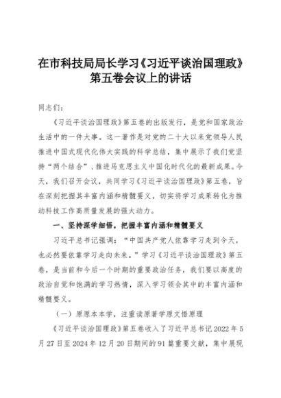 【七哥公文】2025年:在市科技局局长学习《习近平谈治国理政》第五卷会议上的讲话+更多免费公文+VX:QiGeGongWen2024