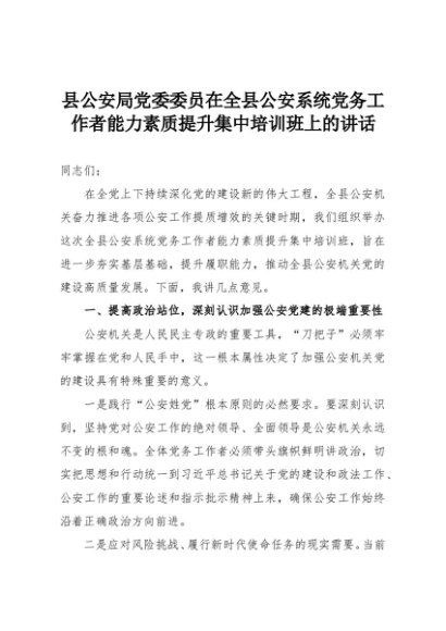 【七哥公文】2025年:县公安局党委委员在全县公安系统党务工作者能力素质提升集中培训班上的讲话+更多免费公文+VX:QiGeGongWen2024